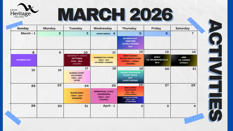 March 12 - Héma Québec Blood Drive Kiosk – 10:30am-1:30pm (Agora)