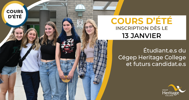 Communiquez avec notreconseiller en mesures adaptéesdès que possible à l'adresse AccessAbility@cegep-heritage.qc.ca.