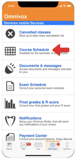 Veuillez noter que des frais de cours supplémentaires peuvent être ajoutés et doivent être payés avant d'accéder à votre horaire sur Omnivox. Vous pouvez le faire en consultant votre relevé de compte sur Omnivox.