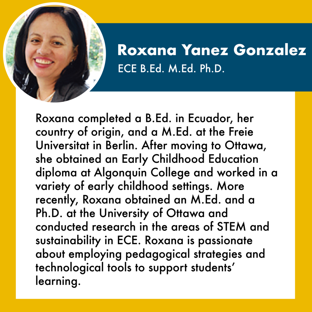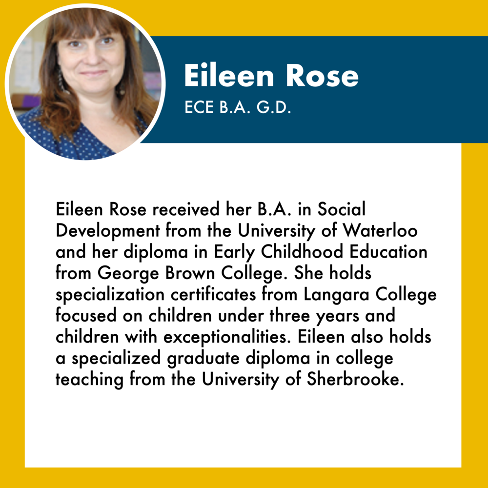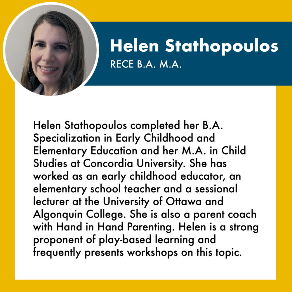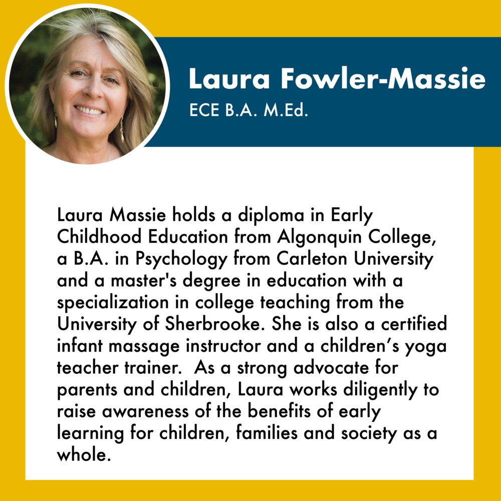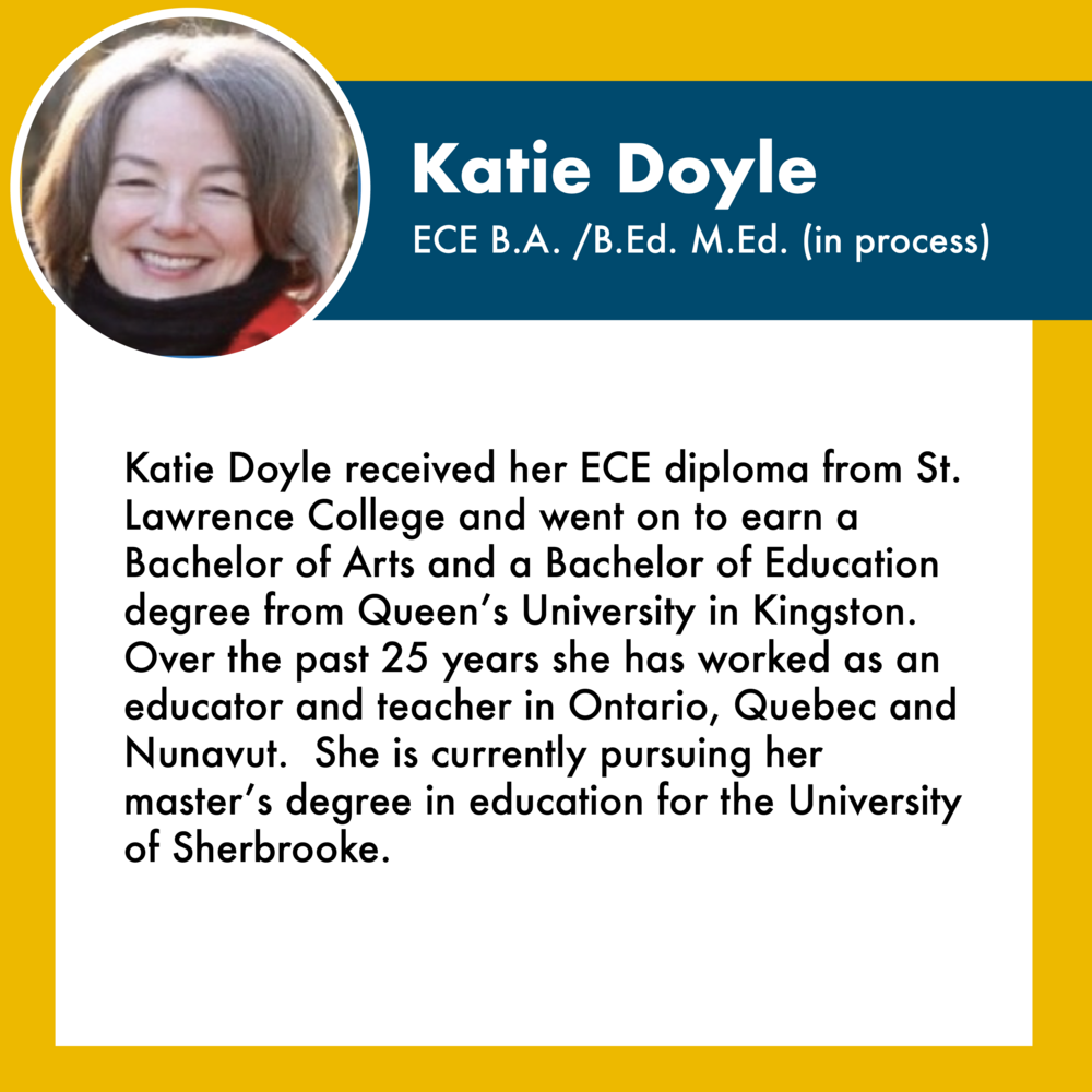 Diploma in Early Childhood Education, Master of Education from the University of Ottawa, currently works for the Ontario Ministry of Education as a Program Advisor