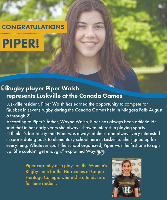 Rugby player Piper Walsh represents Luskville at the Canada Games