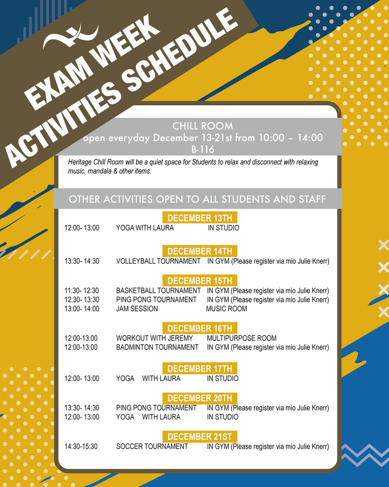 Daily update · Library Services: Contest · Science Program: Physics Contest · HRM Program: Cookie sale · Campus Life: Fitness schedule